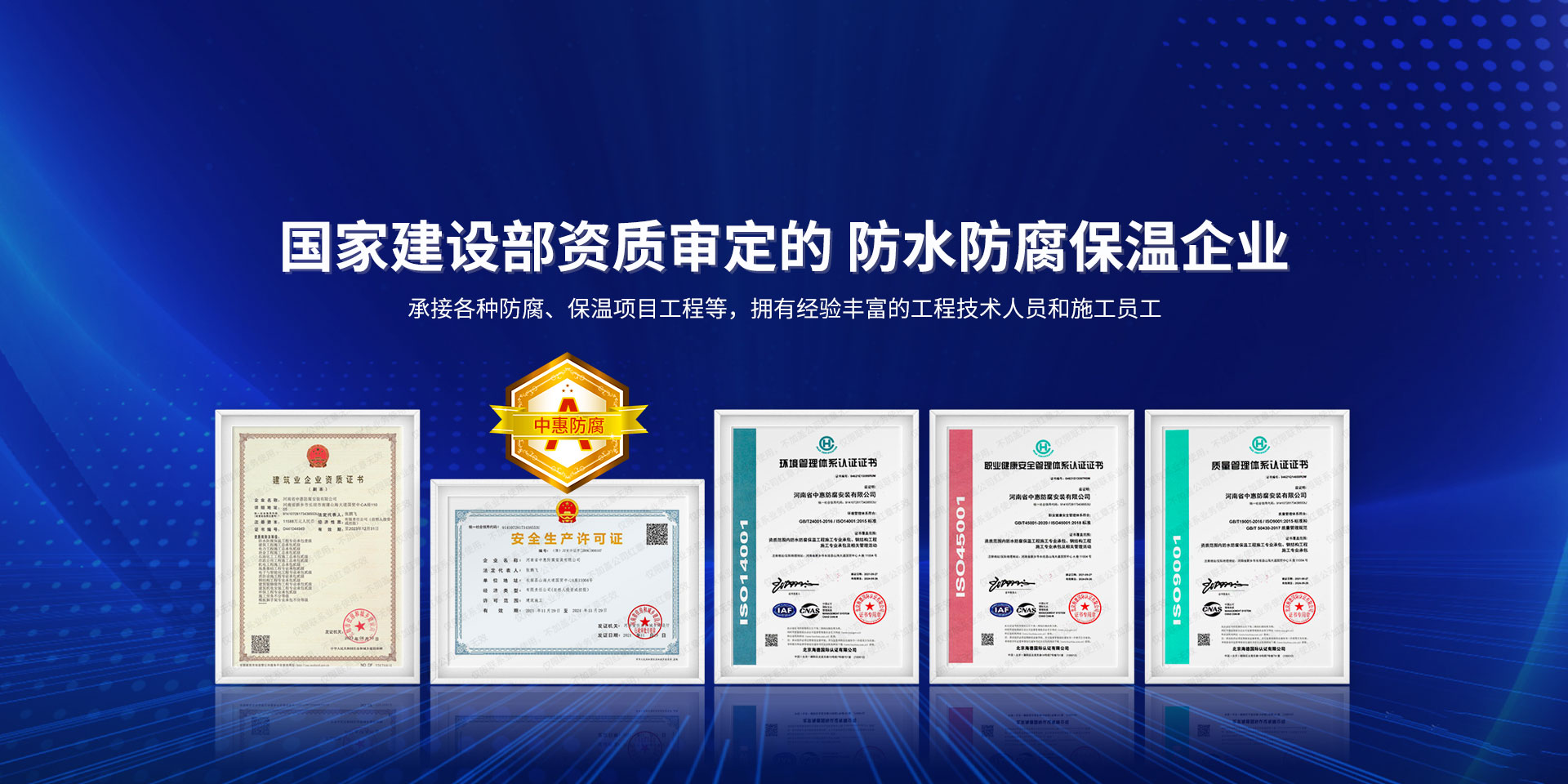 公司經營范圍:防水防腐保溫工程;消防設施工程;建筑裝修裝飾工程;建筑機電安裝工程;電力工程;建筑工程;石油化工工程;工業清洗工程;油罐清洗工程;鋼結構工程;環保工程;模板腳手架工程;電纜防火封堵、防污閃噴涂、外墻外保溫工程;各類施工勞務作業;設備維修、船舶鉚焊、涂裝;電力工程材料、建材、防水材料、防火材料、防腐保溫材料銷售,并相繼通過了GB/T19001-2008idtISO9001:2008GB/T50430-2007質量管理體系認證證書。GB/T24001-2004idtISO14001:2004環境管理體系認證證書。GB/T28001-2011idtOHSAS18001:2007職業健康安全管理體系認證證書。公司是中國防腐蝕于防護協會、中國施工企業管理協會、電力協會和中國鋼結構防水協會會員單位。 公司的經營業務涵蓋了石油、化工、電力、冶金、煤炭、船舶、國防、燃氣、水利、環保、交通運輸、航空及國防軍工和輕紡市政等行業的防腐保溫絕熱設備。鋼結構安裝、防火、防水、金屬噴鍍、聚脲噴繪、陰極保護、防滲透堵漏、玻璃鋼及各種磚版材料襯里、橡膠襯里、煙氣硫和耐酸溶劑腐蝕等工程施工。公司連續十年榮獲“省市先進施工企業”“安全生產先進單位”“重合同,守信用企業”和“AA***資質企業”的稱號。2000年被命名為市級文明單位,2002年被國家工商行政管理局命名為“重合同,守信用的企業”、被中國工業防腐蝕技術協會命名為“防腐蝕企業,能源節約及環境保護領域有豐富的經驗和***的業績。工程一次交驗合格率100%。其中攀枝花鋼鐵公司煉鐵廠四號高爐及熱風爐防腐工程、上海寶鋼公司煤氣柜防腐工程、撫順石油一廠裝置防腐項目、齊魯石化公司稀烴廠高塔防腐工程、吉林化學工業公司煉油廠油罐防腐工程、天津石化熱電廠六號爐頂棚聯絡管保溫工程、大慶油田(太倉)力神泵業工程、中國化學工程第十一建設工程、中原油田勘探局工程、中國石化銷售有限公司華北分部、魯皖輸油管道工程、貴州開磷息烽合成氨工程、陜西黃陵煤化工程、中國石油天然氣西部管道塔里木輸油工程、邯鋼集團邯寶鋼鐵公司煉鐵工程、德州供電工程、吉寶(南通)船廠工程,偃師華潤熱力工程、鄭州熱力總公司。 河南省中惠防腐安裝有限公司愿以豐富的施工經驗,***的技術,***的設備,***的管理,***的服務,竭誠為國內外廣大的用戶提供***滿意、******的工程作品。 我公司愿與國內外同仁一道,團結協作,共同推進防腐蝕行業發展! 公司地址:河南省長垣縣建設路北段360號 固定電話:0373-8866488 郵編:453400 網址:http://www_zhff_com_cn.ycsdhw.com